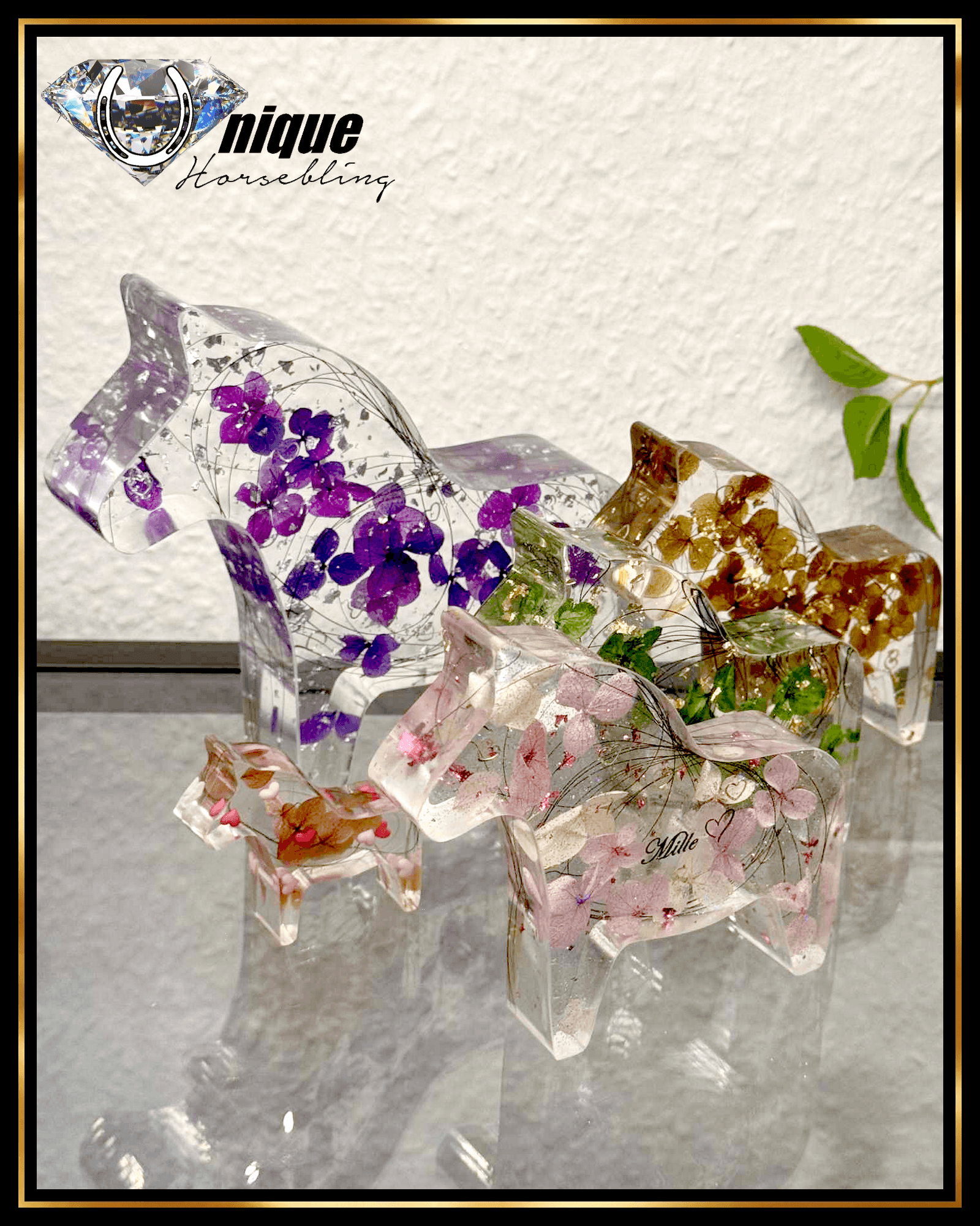 Mange af jer har efterspurgt mindeprodukter med hestehår, aske eller tænder – især fordi ikke alle har haft heste, der har gået med hestesko. Vi har derfor udviklet en række unikke produkter, hvor disse personlige elementer nænsomt støbes ind i smukke former med epoxy.