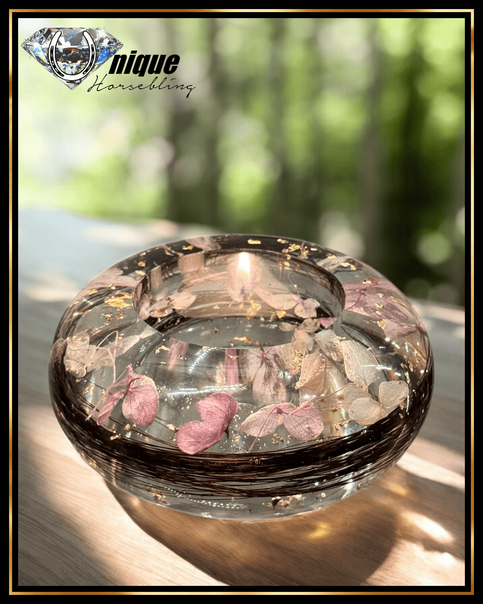 Vores unikke fyrfadsstager laves med hår, aske eller tænder fra din hest, hund, kat – eller et andet kæledyr, som har haft en særlig plads i dit liv. Hver stage er skabt i resin/epoxy og udformes med kærlighed og omtanke, så du får et personligt minde, der både kan bruges og vises frem.