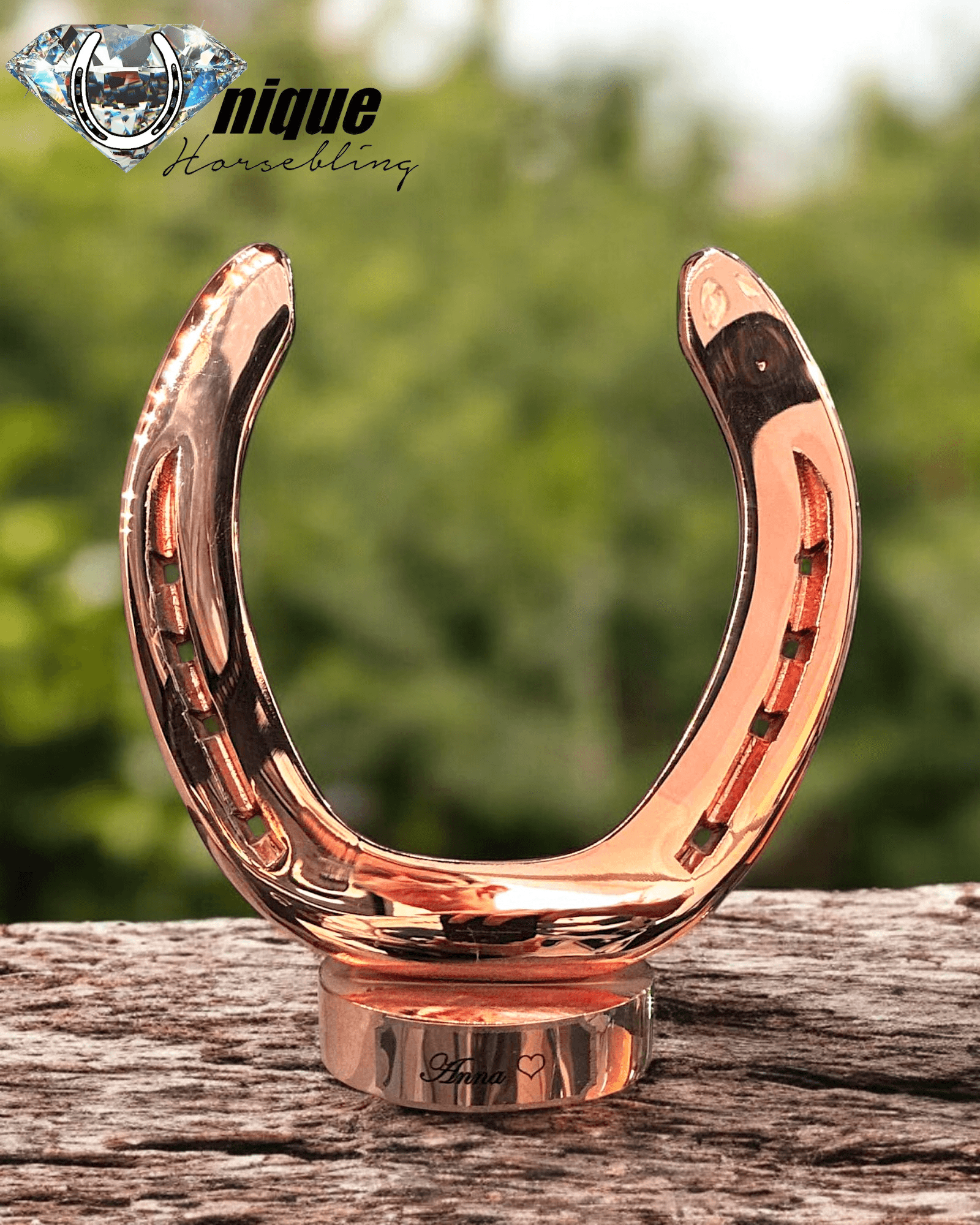 Vi tager din brugte hestesko og omdanner den til et smukt, spejlblankt design på rund metalfod, belagt med kobber.