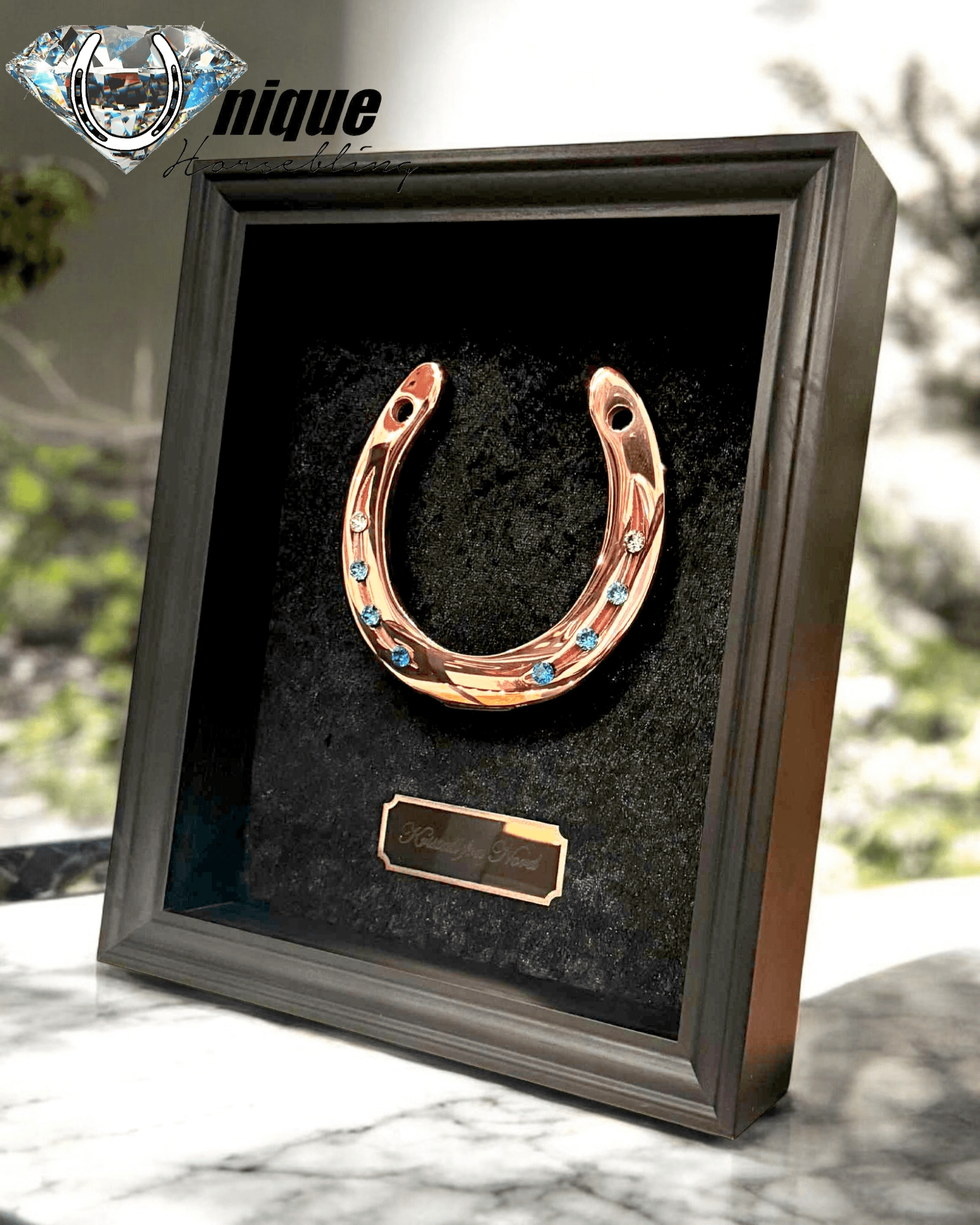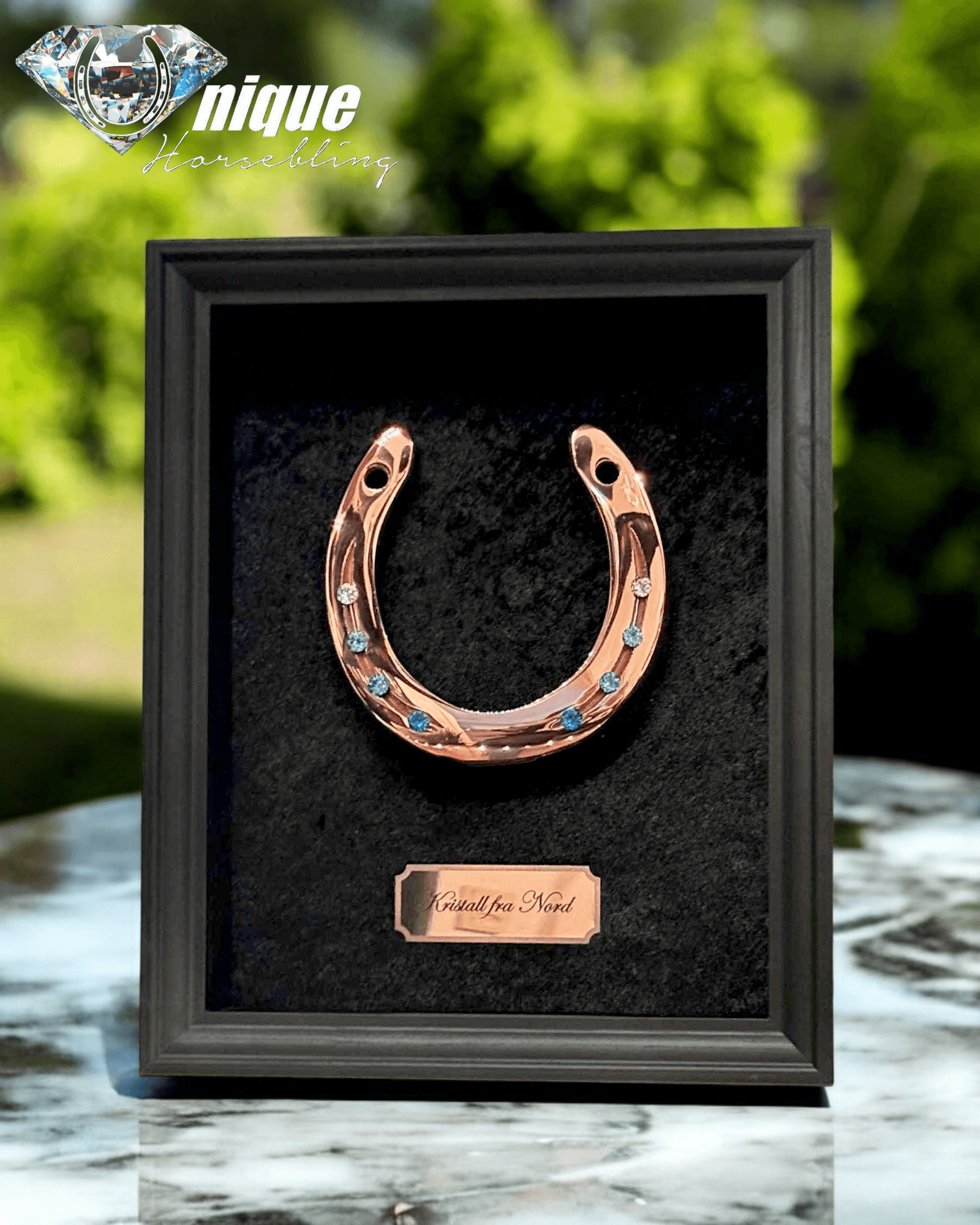 Hesteskoen monteres i en smuk ramme.