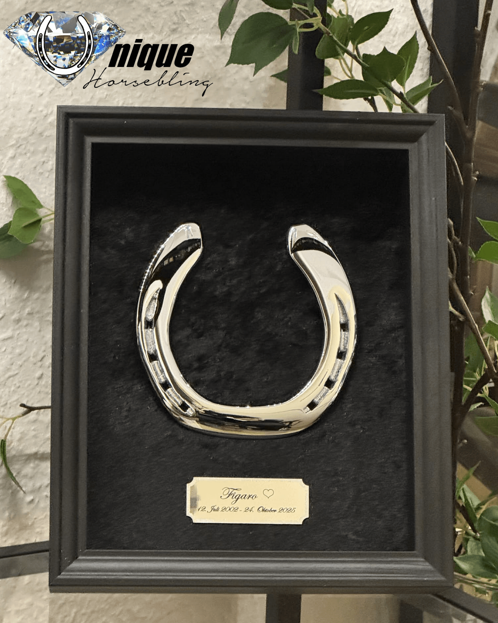Hos Unique Horsebling kan du bestille dette eksklusive design, hvor din hestesko bliver forkromet til højglans – så blank, at du kan spejle dig i den.