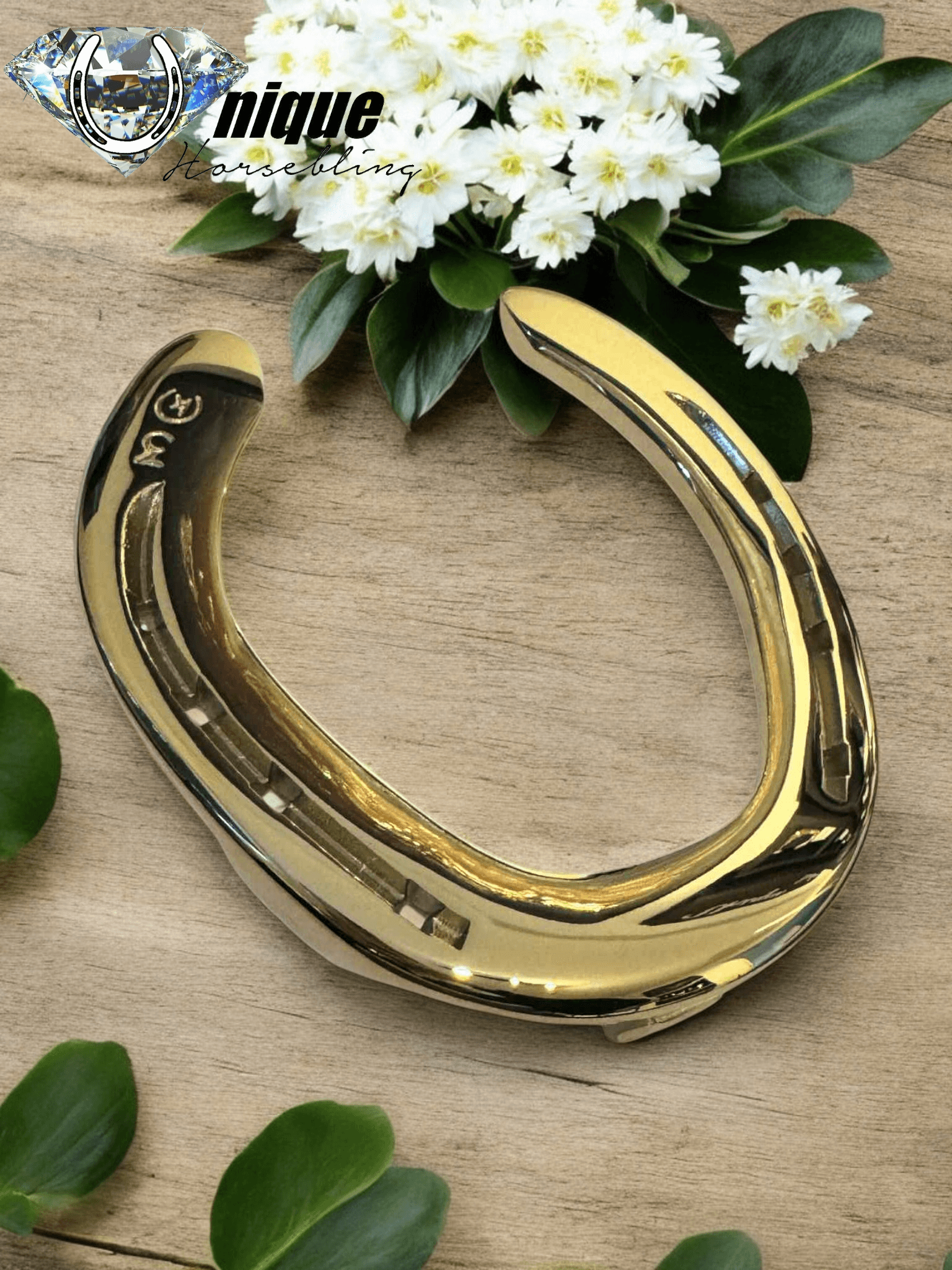 Vi forvandler din egen brugte hestesko til et smukt og spejlblankt kunstværk, industrielt belagt med messing.