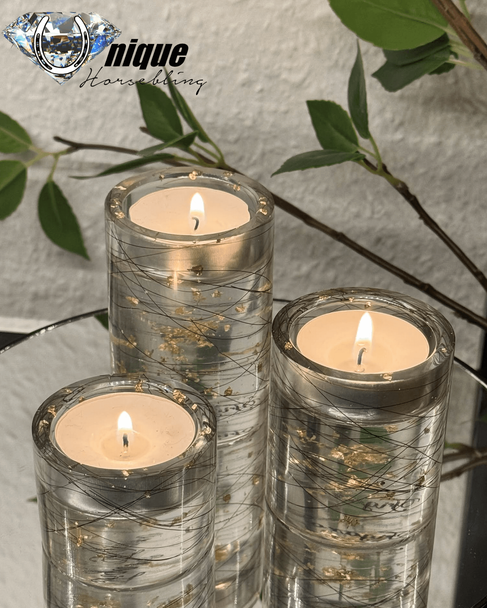 Rundt elegant og tidløst fyrfadsstage sæt, hvor du kan få indkapslet minder i form af hår/aske fra dit hjertedyr.